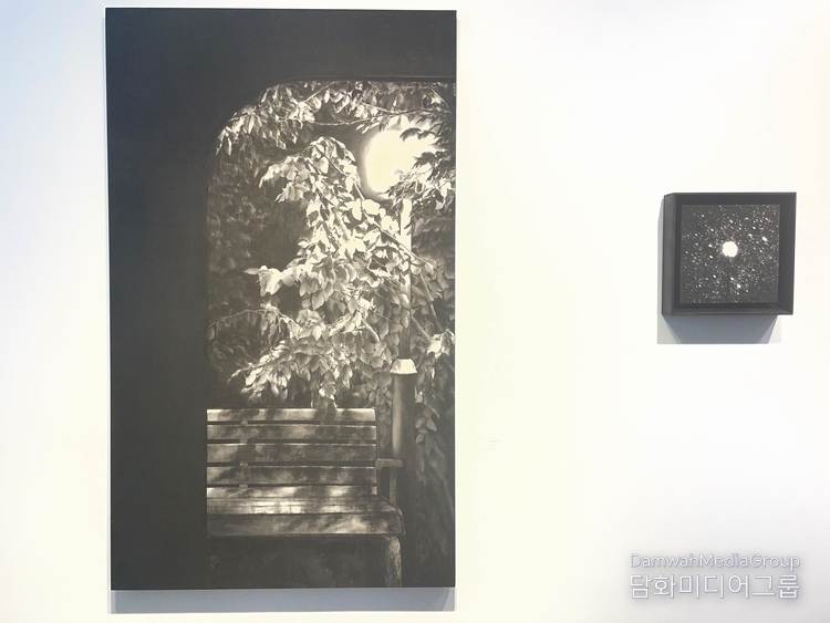 전시 제목 ‘깊은 밤 메어리’는 복잡한 사회 관계망 속에서 자기 스스로 빛을 발아하는 현상을 예술적 감성으로 승화했다. 수묵을 재료로 빛이 흘러나오거나 비집고 새어 나오는 사실성을 시각화한 게 이채롭다.실제로 그의 작품은 이 특징이다. 관조적인 수묵산수화가 아니라 생생한 밤 풍경의 현장감을 담은 현대적 산수화로 평가받는 이유도 여기에 있다.