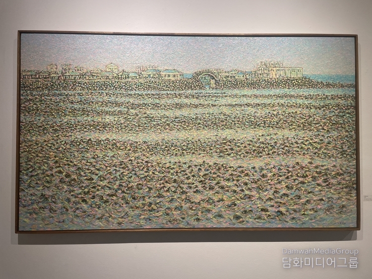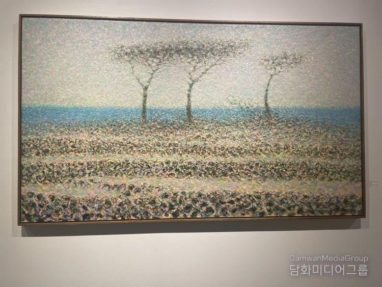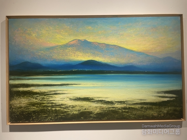 한라산과 바다,해변과 마을의 풍경은 수많은 색점의 중첩을 통해 시간의 흐름과 감정의 떨림으로 확장되며, 관람자에게 자연과 호흡하는 경험을 경험하게 하고 있다. 작가는 “자연의 호흡과 생명의 시간성, 끊임없이 생성과 소멸을 반복하는 자연의 생명력과 기적 질서, 눈에 보이지 않는 생명의 리듬을 회화로 표현한다.‘고 한다.