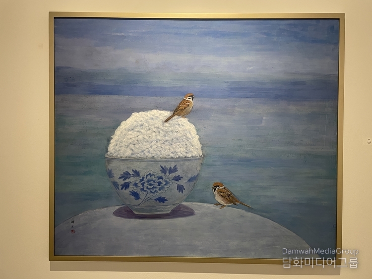 이번 전시에서는 전통적인 재료와 기법을 바탕으로, 이를 오늘의 시선에서 어떻게 바라볼 수 있을지를 민화와 불화에서 사용되는 소재와 표현 방식을 작가만의 감각으로 재해석하며, 고봉밥에 담긴 의미를 화면에 옮기고 있다.