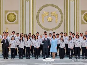 유엔저널 김동현 기자 | 이재명 대통령은 5일 오후 2026 밀라노-코르티나 동계올림픽에 참가했던 대한민국 국가대표 선수단을 초청해 격려 오찬을 가졌다. 오늘 자리는 새 정부 출범 후 처음으로 치러진 올림픽대회에서 ‘한계를 뛰어넘은 도전’을 보여준 대한민국 국가대표 선수단에게 국민을 대표해서 감사를 전하는 자리였다. 이번 오찬에는 자신의 기록을 경신하거나, 스스로 한계를 극복해 국민께 감동을 준 국가대표 선수단과 지도자들, 정부 관계자와 종목 단체장 그리고 대회 기간 현지에서 선수들에게 따뜻한 식사를 제공했던 급식지원센터 조리사 등 100여 명이 초청됐다. 특히 대한민국 설상종목 첫 금메달리스트인 최가온 선수와 역대 최다 올림픽메달리스트인 최민정 선수, 이번 대회 MVP로 선정된 김길리 선수, 척추 부상을 극복하고 올림픽에 출전한 정승기 선수 등 각자의 스토리를 가진 선수들이 함께 했다. 이재명 대통령은 격려사를 통해 “여러분들이 대한민국의 자부심”이라면서 “선수들 덕분에 우리 국민들도 어려운 환경 속에서 힘을 얻고 희망을 노래할 수 있었다”고 감사를 표했다. 이어 “국가대표 선수 한 분 한 분이 모두 국민 영웅들”이라면서 “대한민국 동계스포츠 발전을 위한