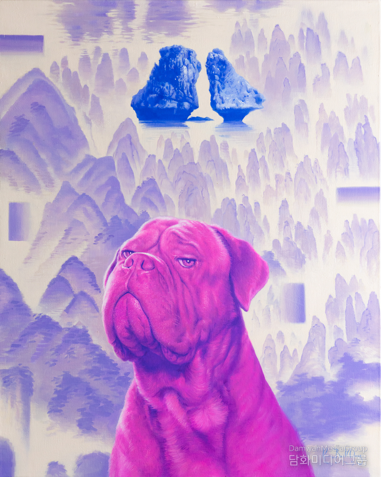 특히<기원–존재>2024_코끼리 연작은 몽환적인 수묵의 산수 배경 위에 코끼리 모자가 나란히 걷는 장면을 통해 “사라져가는 생명에 대한 기도이자 존재의 증언”을 표현했다. 작가의 작품은 단순한 재현을 넘어, 존재의 유한성과 생명의 윤리적 존엄을 묻는다.