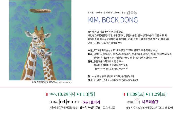 - 2025년 10월 29일(수)~11월 3일(월) / 인사아트센터 3층 G&J갤러리