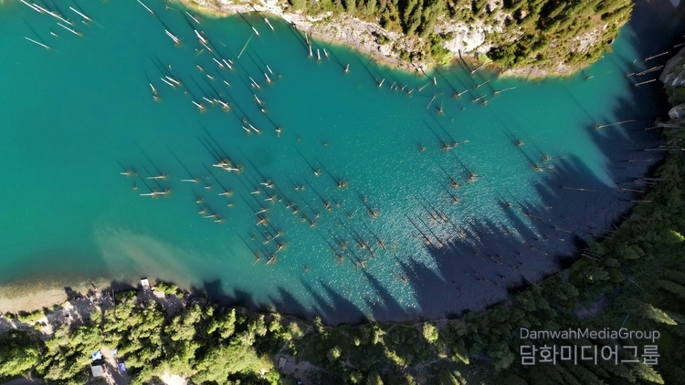 1911년 지진이 만들어낸 신비의 호수. 침엽수림이 그대로 잠긴 채 수면 위로 솟아오른 모습은 마치 물속 숲처럼 신비롭다. 사계절마다 빛깔을 달리하는 에메랄드빛 호수는 자연이 만들어낸 예술작품이라 할 만하다.