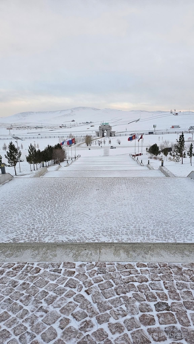그러나 한겨울, 모든 것이 달라진다. 흰 눈이 초원을 덮고, 하늘과 땅의 경계가 사라질 때, 은마동상은 침묵의 상징이 된다. 차가운 은빛 위에 내려앉은 눈은 화려함을 지우고, 남는 것은 결기와 고독이다. 이때의 칭기스칸은 정복자가 아니라, 혹독한 자연과 운명을 견뎌낸 ‘존재의 상징’으로 다가온다.