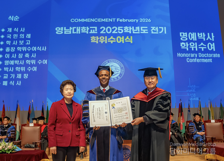 유엔저널 이성준 기자 | 영남대학교는 20일 천마아트센터 그랜드홀에서 Dessie Dalkie Dukamo 주한에티오피아 대사에게 명예국제개발학박사 학위를 수여했다. 이번 수여는 에티오피아의 국가 발전과 인재 양성, 그리고 한–에티오피아 간 우호 협력 증진에 기여해 온 공로를 기리는 동시에, 한국전쟁 참전 우방국에 대한 한국인의 보은報恩 정신을 담은 상징적 조치로 평가된다.