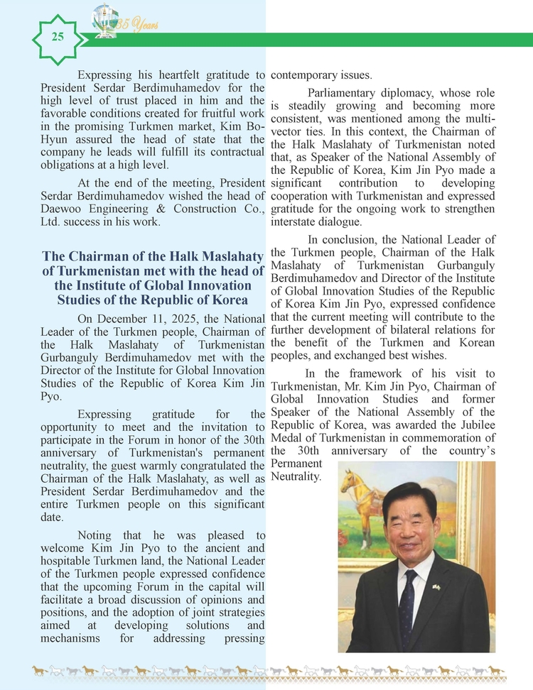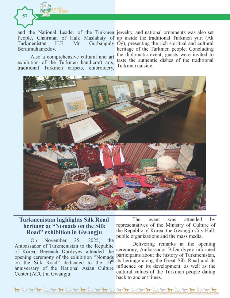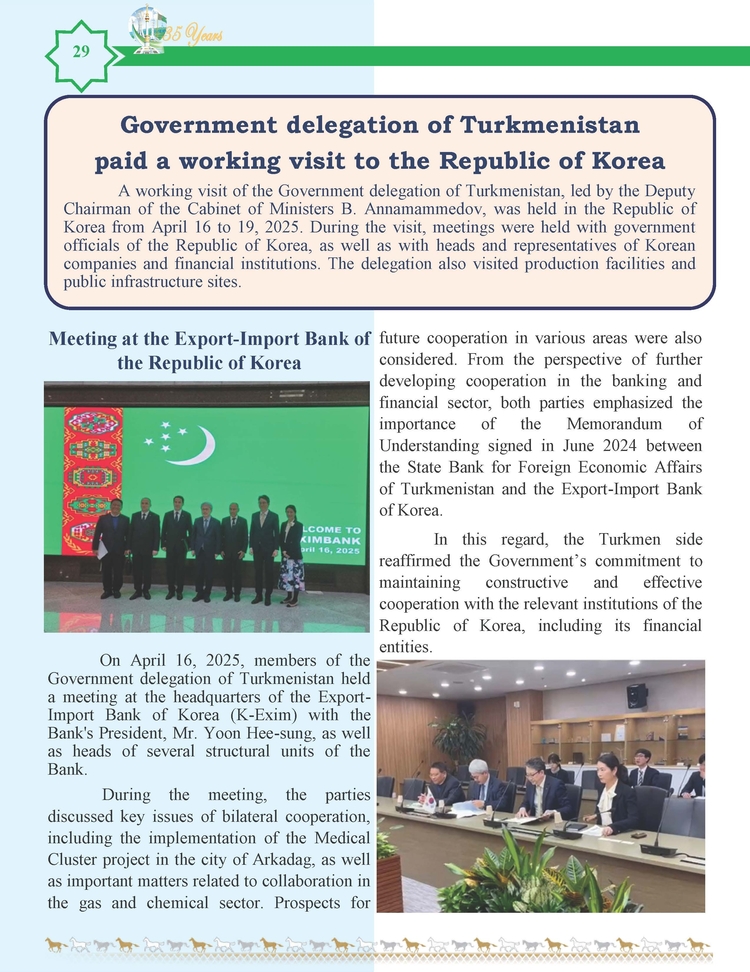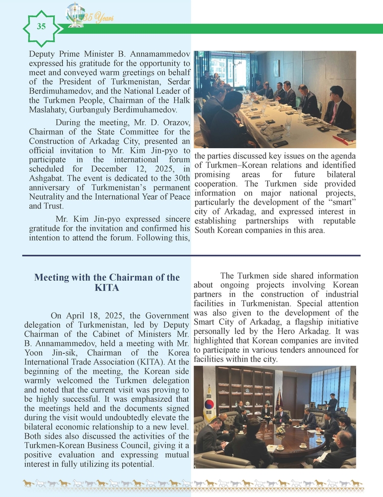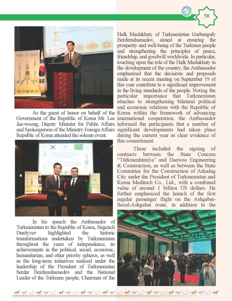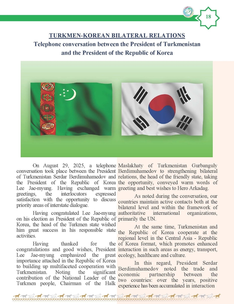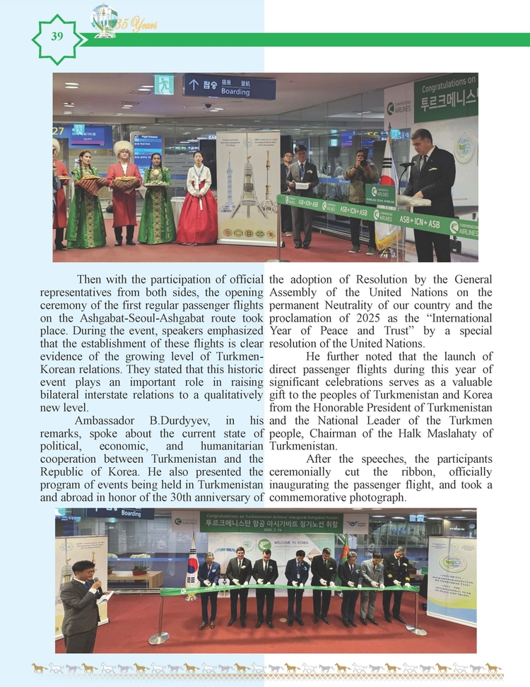 유엔저널 이성준 기자 | TURKMENISTAN BILEN KOREYA RESPUBLIKASYNYN ARASYNDAKY HYZMATDA LYK OSDURILYAR