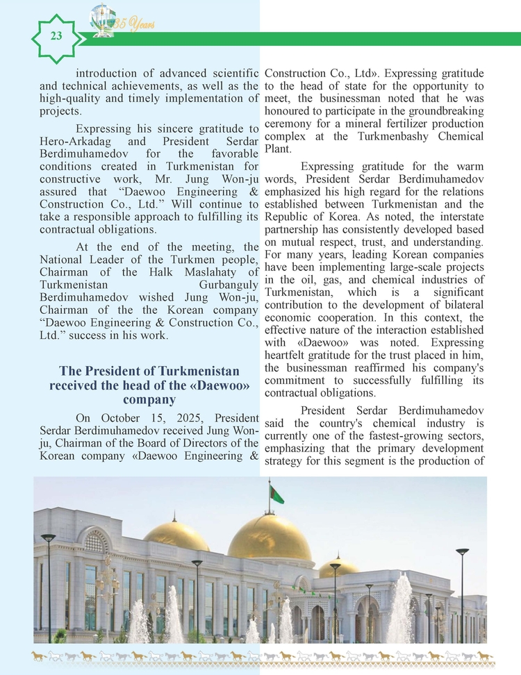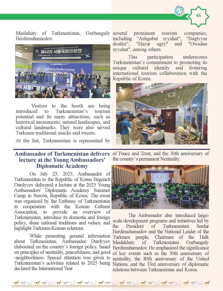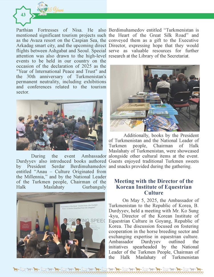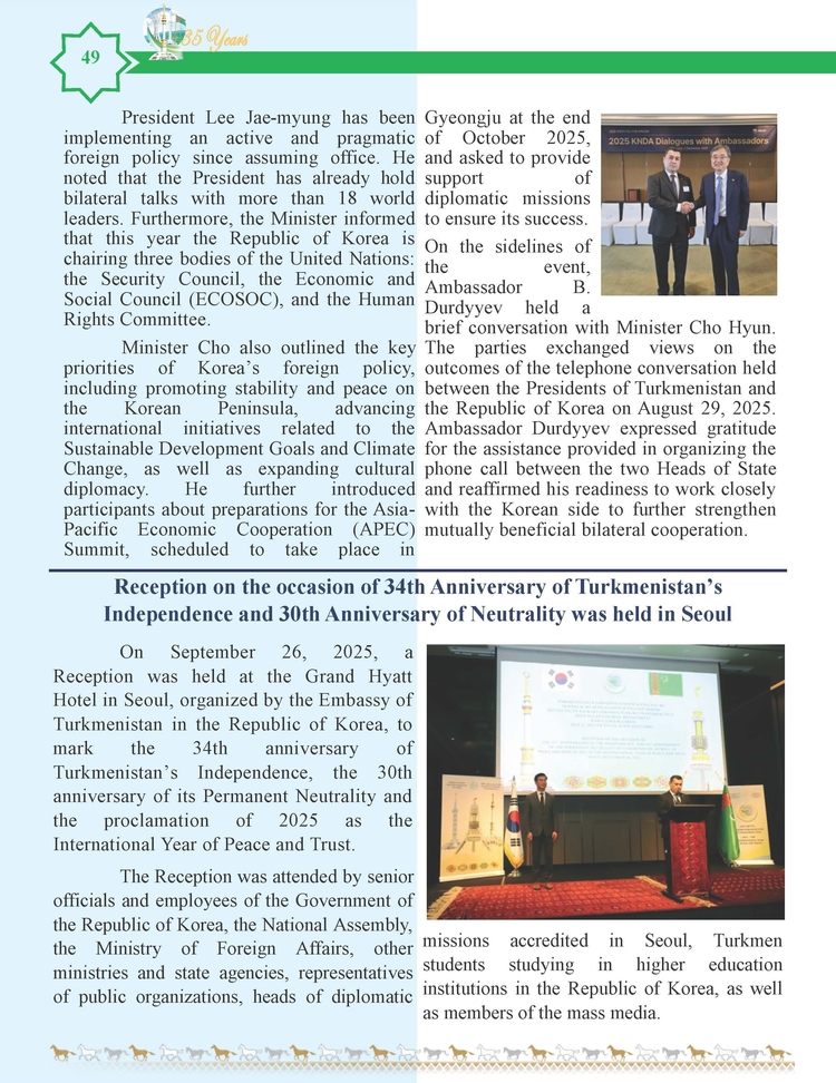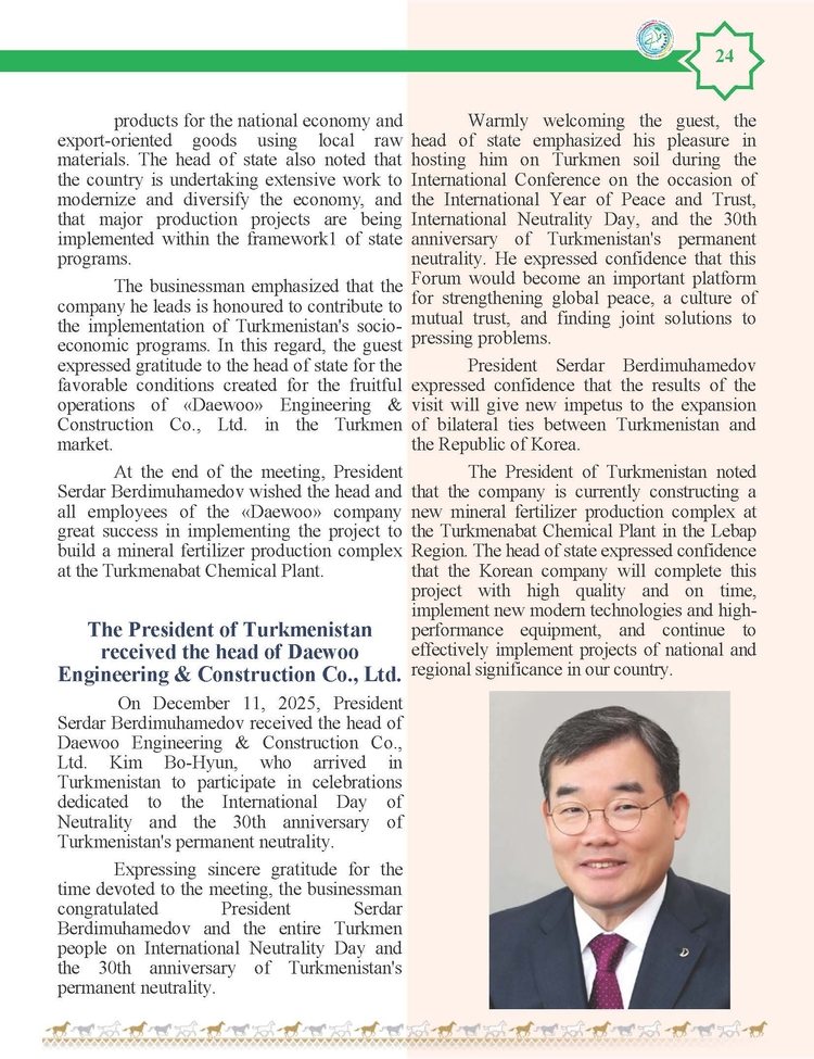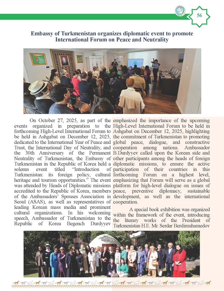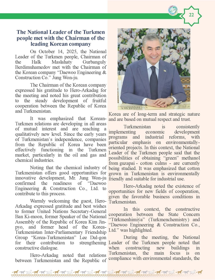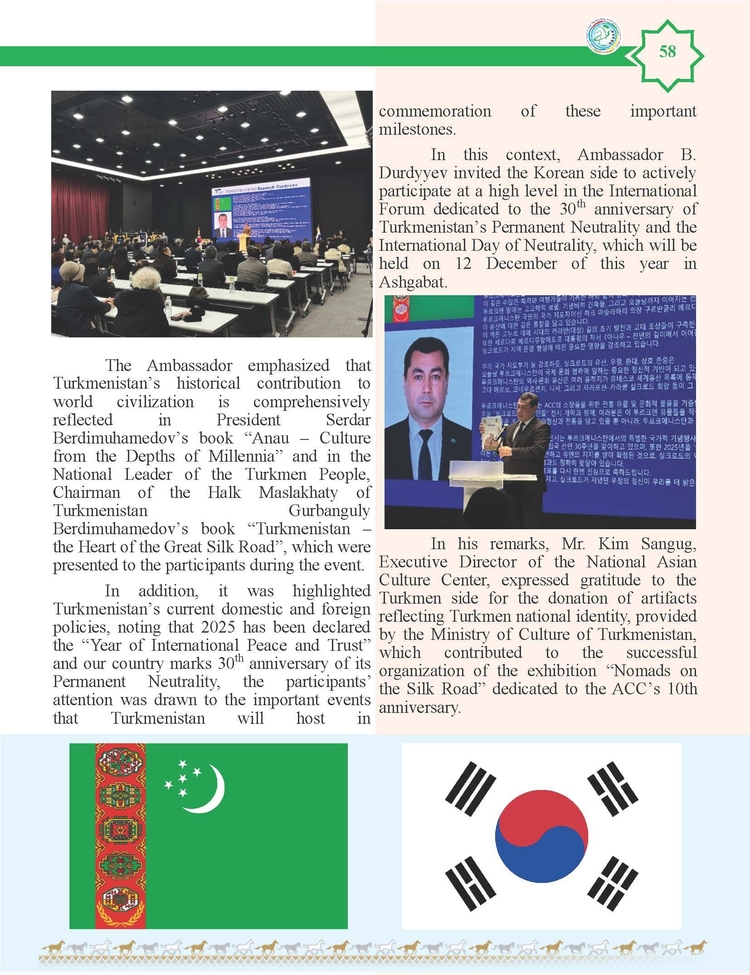 유엔저널 이성준 기자 | TURKMENISTAN BILEN KOREYA RESPUBLIKASYNYN ARASYNDAKY HYZMATDA LYK OSDURILYAR