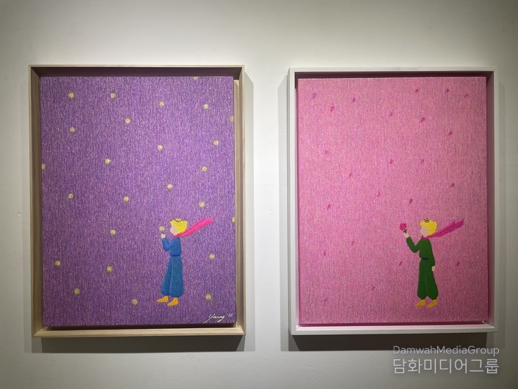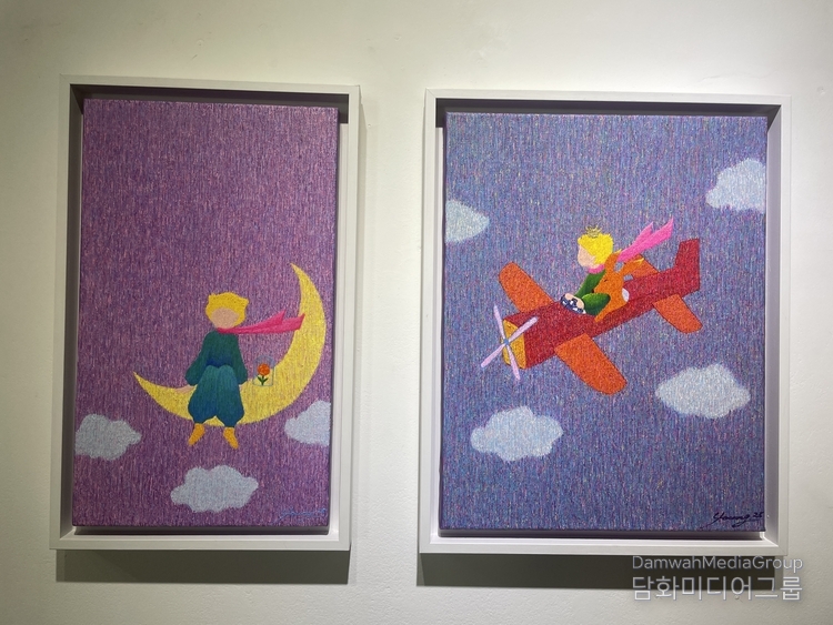 작가는 독창적인 도구와 기법으로 작업을 하고 있는데 얇은 선을 겹쳐서 표현되는 선묘법은 캔버스 위의 수많은 선의 겹침과 생각의 잔상 그리고 마음속 깊은 곳에서 들려오는 어지러운 마음의 소리를 선의 겹침 속에 가두고 비로써 아름다움과 찬란함으로 피어난다.
